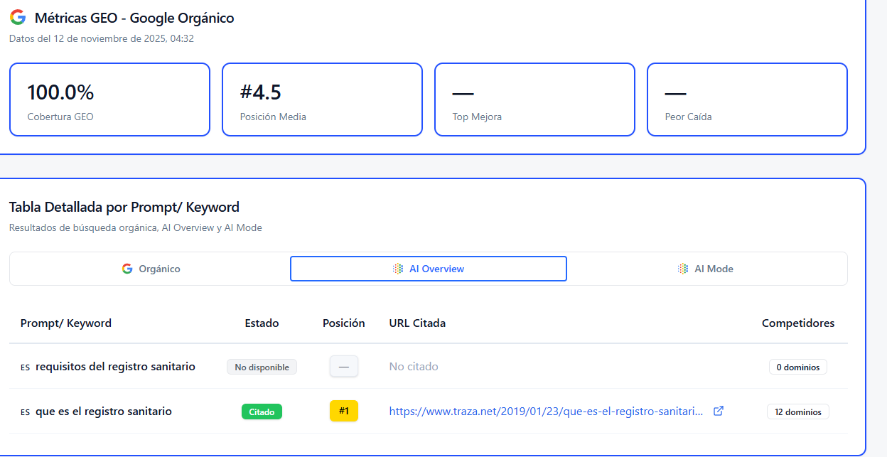 Este mes he estado probando una nueva herramienta de análisis y seguimiento diario de visibilidad de una marca en estas plataformas de IA dado que existen versiones de pago con un precio elevado y cuando trabajas de consultor SEO en agencia necesitas una sencilla para empezar y reportar a clientes de forma periódica en los informes mensuales de campañas SEO.